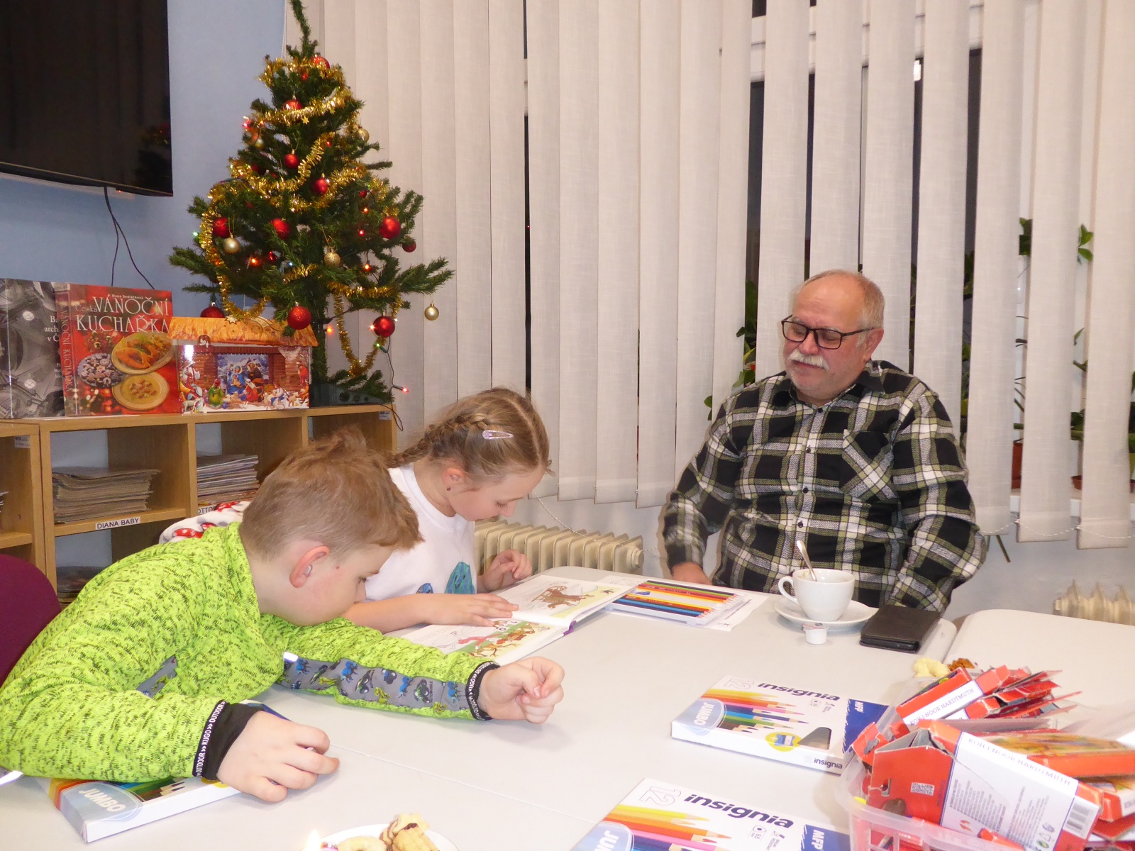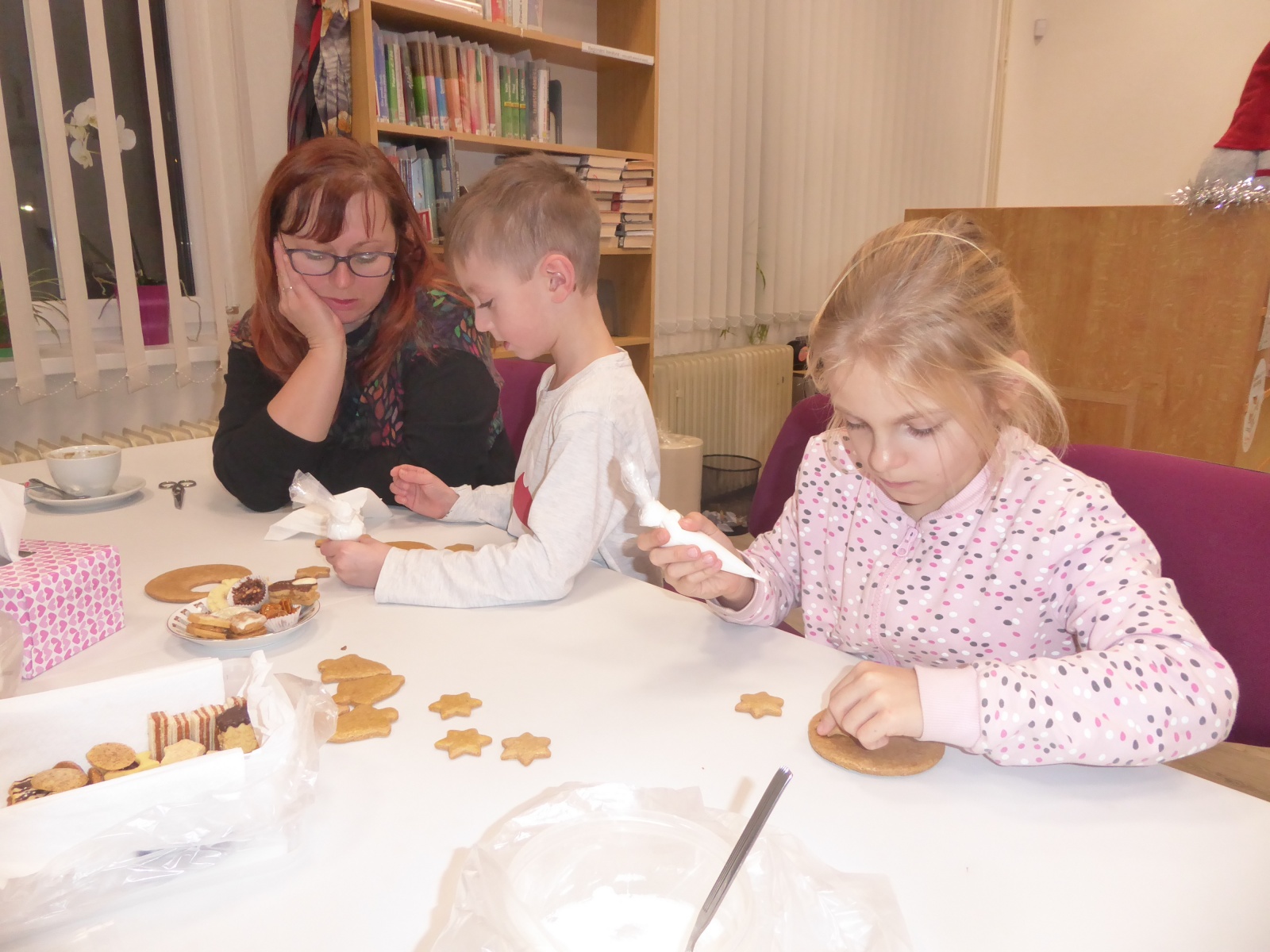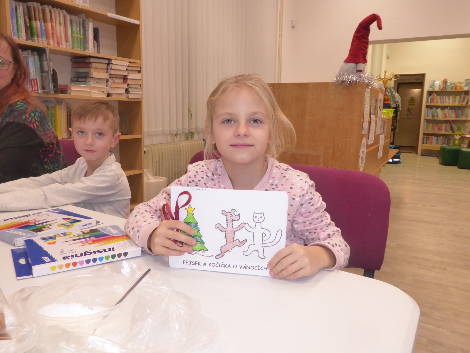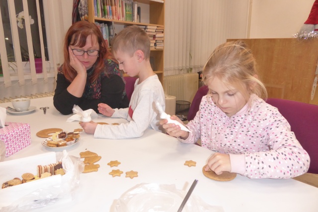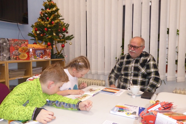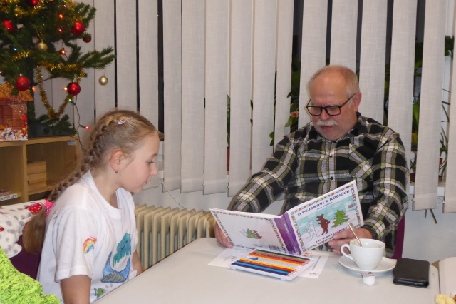 V pondělí 16. prosince 2024 proběhlo setkání klubíku Školáček, které bylo inspirováno knihou Jany Uhlířové O pejskovi a kočičce, jak slavili Vánoce. Nejprve jsme si tento příběh společně přečetli a poté se děti pustily do tvoření. Vybarvovaly ilustrace ke knize, které jsme následně svázali do obrázkového leporela. Na závěr si děti zdobily vánoční perníčky, což navodilo tu pravou sváteční atmosféru.