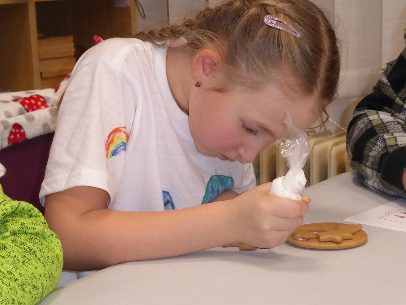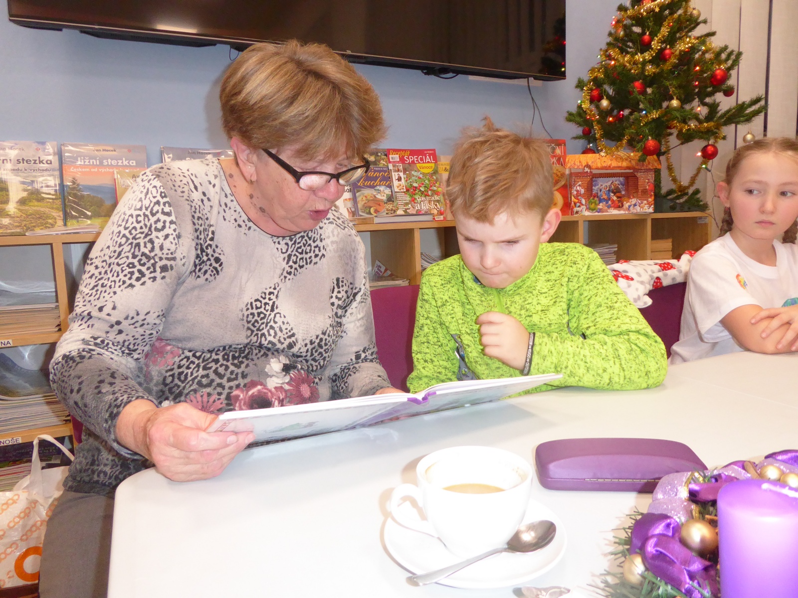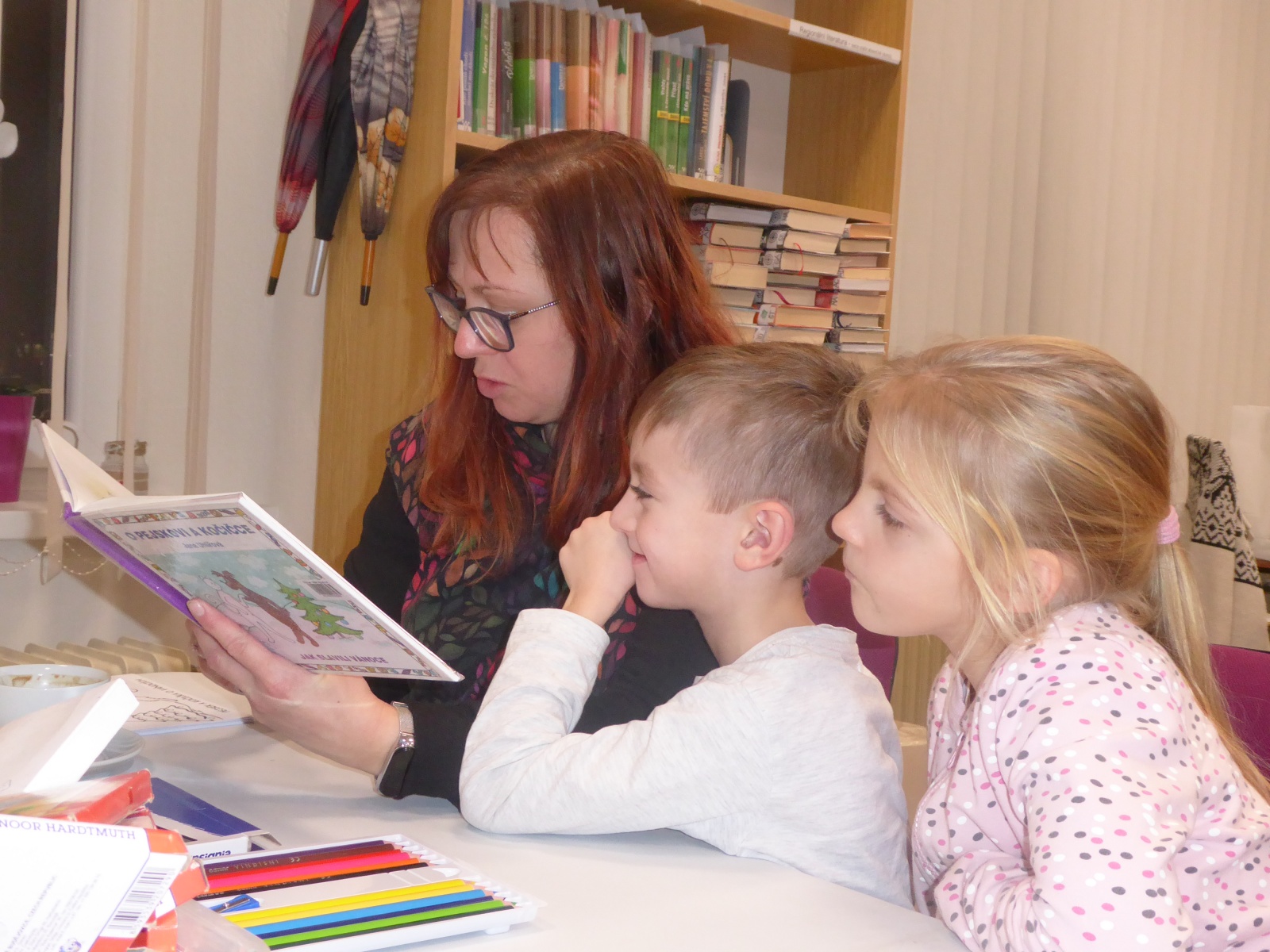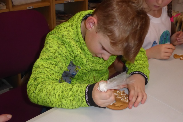 V pondělí 16. prosince 2024 proběhlo setkání klubíku Školáček, které bylo inspirováno knihou Jany Uhlířové O pejskovi a kočičce, jak slavili Vánoce. Nejprve jsme si tento příběh společně přečetli a poté se děti pustily do tvoření. Vybarvovaly ilustrace ke knize, které jsme následně svázali do obrázkového leporela. Na závěr si děti zdobily vánoční perníčky, což navodilo tu pravou sváteční atmosféru.