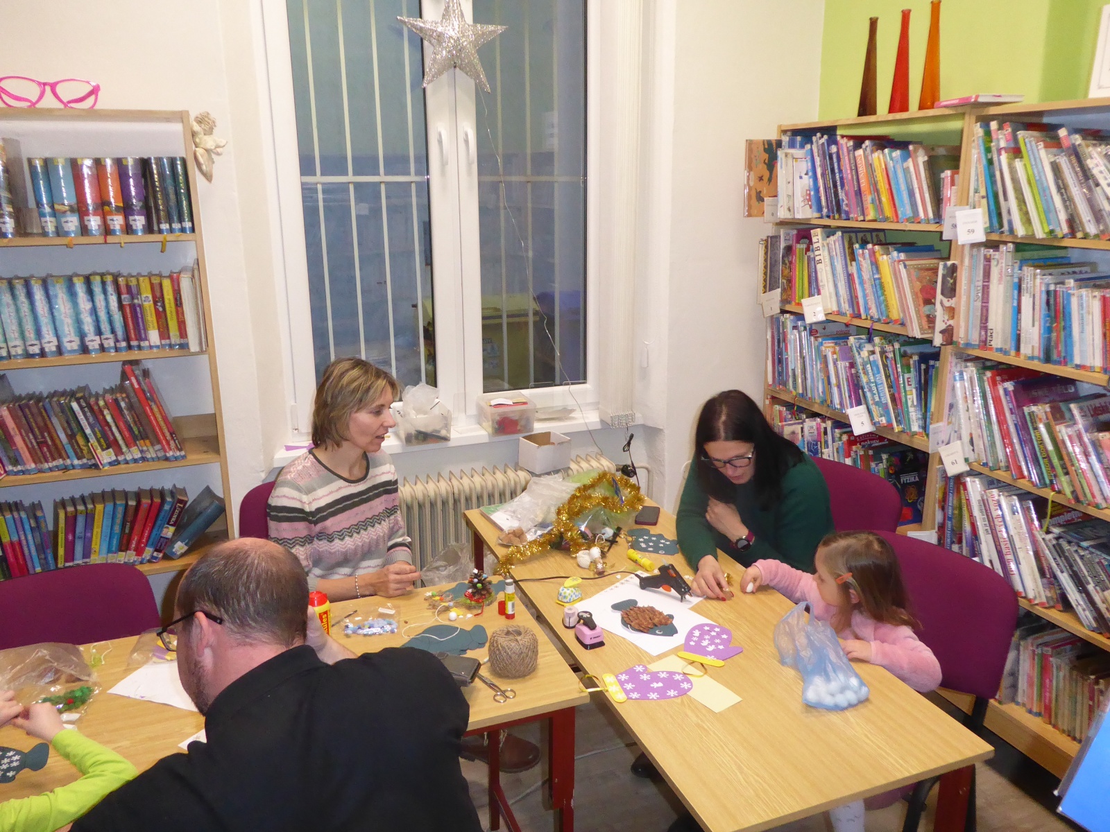 V naší knihovně proběhla 11. prosince 2024 vánoční výtvarná dílna, která dětem přinesla nejen kreativní zážitek, ale i vánoční atmosféru plnou radosti a tvoření. Malí návštěvníci si mohli vlastnoručně vyrobit krásné dekorace – papírového kapříka, roztomilého andílka nebo ozdobený stromeček z šišek. Dílna se těšila velkému zájmu, děti pracovaly s nadšením a výsledné výtvory byly opravdu nádherné. Společně jsme si užili příjemné odpoledne a připomněli si, že Vánoce jsou časem radosti, tvořivosti a společného sdílení.