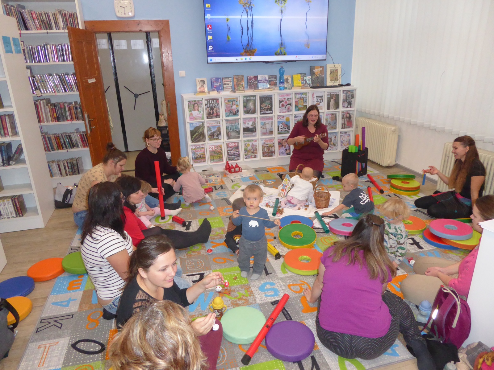 V pondělí 10. listopadu 2025 se v naší knihovně uskutečnila další milá setkání nejmenších dětí a jejich rodičů v rámci Klubíku Kulihrášci. Pro děti ve věku od 0 do 3 let jsme připravili dvě dopolední setkání – od 9.00 a od 10.30 hodin. Na programu bylo muzikoterapeutické dopoledne, které pro nás vedla lektorka Zuzana Budílková. Děti si mohly vyzkoušet různé jednoduché hudební nástroje, společně jsme zpívali, rytmizovali a nechyběl ani pohyb, který všechny krásně vtáhl do tématu blížícího se svátku sv. Martina. Celé dopoledne se tak neslo v příjemné atmosféře zpěvu, hry a radostného objevování.