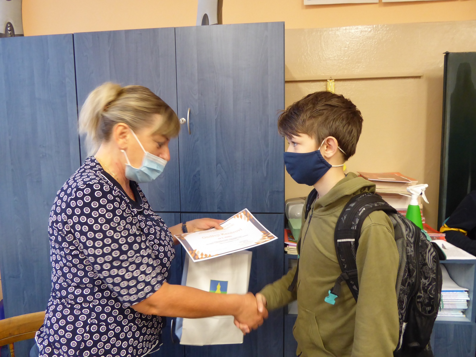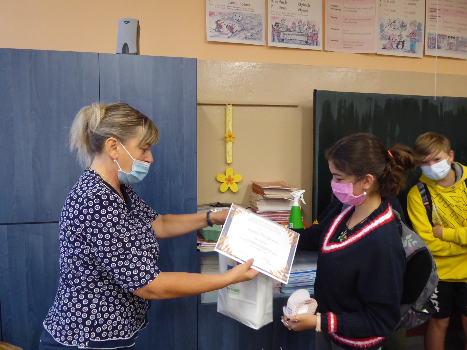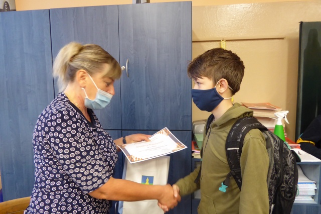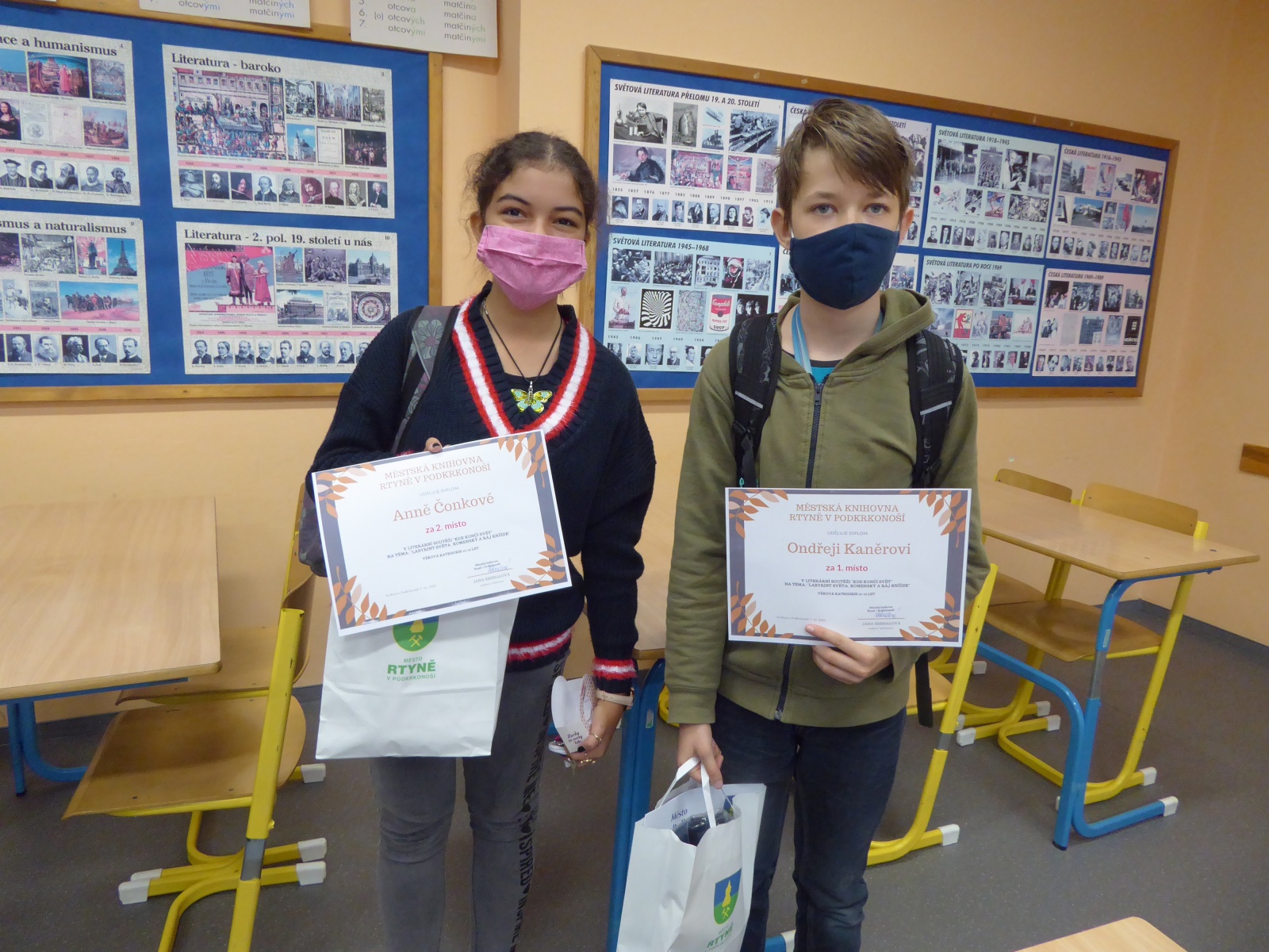Předání ocenění účastníkům místního kola 11. ročníku literární soutěže „Kde končí svět“ na téma „Labyrint světa, Komenský a ráj knížek“. Ve věkové kategorii 10 - 12 let se umístil na 1. místě Ondřej Kaněra, 2. místě Anna Čonková, 3. místě Anna E. Nechvílová.